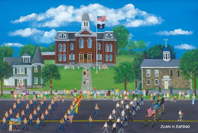 “Con sus coloridas pinturas retrata escenas locales, nacionales e internacionales. Juan H. Espino es Presidente de la Comisión de Preservación Histórica del Condado de Wayne, así como propietario y curador de la “Galería de Arte Looking Glass & Studio Arte” en Hawley.” (3)