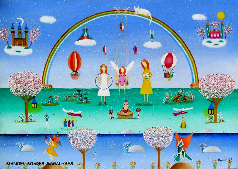 “Manoel Soares Magalhaes nace en Pelotas, Río Grande do Sul, Brasil. Autodidacta en el arte de la pintura, se decanta por el estilo naif. Está Licenciado en Periodismo por la Universidad Federal de Pelotas. Es escritor y guionista para teatro y cine, productor cultural, así como artista visual. Tiene publicados seis libros y en 1982 gana el “Premio João Simões Lopes Neto, en el Género de teatro,” y en 2005 gana el mismo premio en el “Género de cuentos”. Ha trabajado como periodista en el Diario del Pueblo de Pelotas, en el Santa Catarina, Ferianópolis y Correio, Brasilia.” (2)