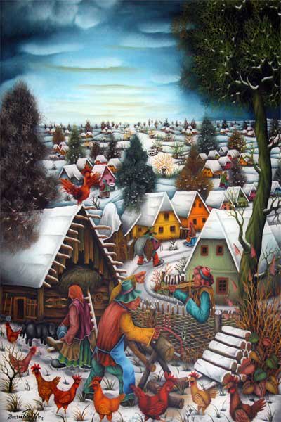 “Drazen Tetec nació el 24 de enero de 1972 en Koprivnica. Se crió y vive en Hlebine donde terminó su escuela primaria. En el ambiente apacible y tranquilo de Podravina, toma el pincel y la pintura, y en 1991 comenzó la primera pintura al óleo sobre vidrio. Después de la primera exposición del grupo, en 1992, en la galería Hlebine Tetec, comenzó su colaboración con José Generalic que le enseña cómo expresar su propia técnica única en el cristal. El resultado de esta cooperación son 3 exposiciones individuales en Zagreb y en la Galería Hlebine. Después de que el pintor se mueve de forma independiente con su trayectoria artística, como pintor diligente y talentoso hasta ahora ha tenido más de cien exposiciones colectivas y diez exposiciones individuales.” (2)
