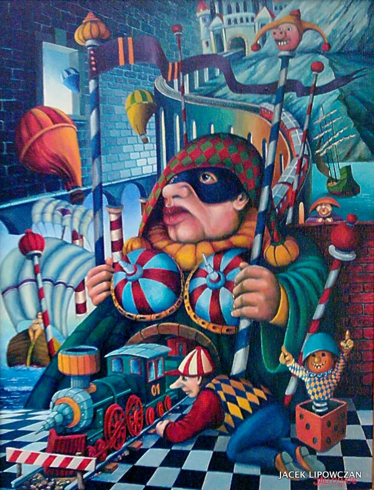 “Desde 2003, Jacek, dedica su vida a la pintura y al trabajo como artista-pintor e ilustrador independiente. Jack Lipowczan siempre se fascinó por el arte de Hieronymus Bosch, Peter Breugel, Holbein y, más tarde, por los artistas del Renacimiento italiano. Esas influencias se pueden ver claramente en sus pinturas, que demuestran la atención meticulosa al detalle, a la composición y al color. El estilo de pintura de Jack puede expresarse mejor como un realismo fantástico entretejido con el surrealismo. Tiene una actitud muy personal hacia su arte: sus pinturas son la síntesis irónica pero benevolente de la vida, vista a través del espejo del alma. Cada una de las pinturas de Jack tiene algunas historias alegóricas que contar, pero deja la interpretación al espectador.” (3)