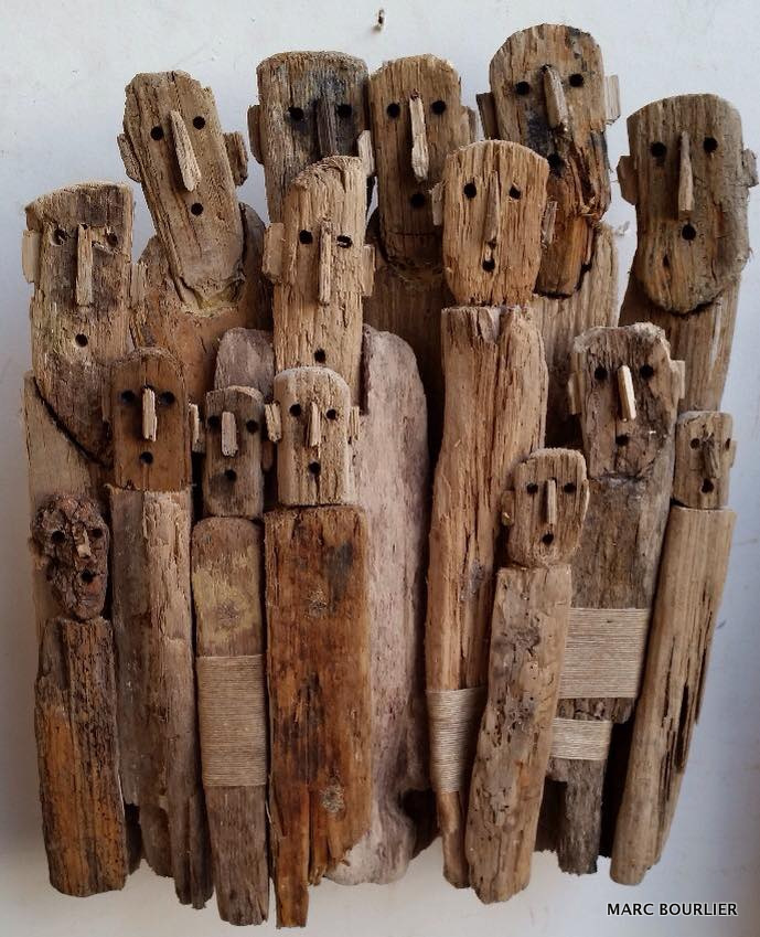 “El estilo de la obra de Bourlier que vemos ahora parece ser el producto de la casualidad: un día en 1995, mientras estaba sentado en la playa de Normandía, un pequeño trozo de madera le llamó la atención, y lo utilizó para realizar su primera pieza. Este acto de apropiación marcó la transición del artista de color a no color y de la pintura a la " casi " escultura ". El único hilo conductor de su trabajo anterior ahora es el elemento humano en el centro de su enfoque.” (3)